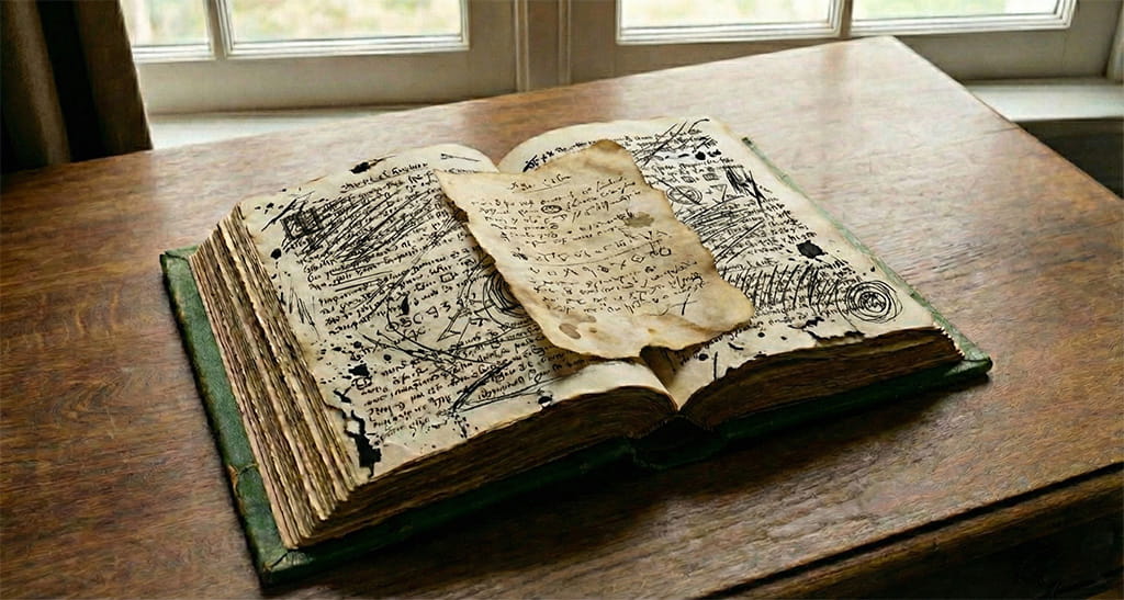 緑の本-2章- 緑の本を開いてみた。印字の上に乱暴な走り書きがされていて解読ができない。何ページかめくってみると、ページの間に1枚紙切れが挟まっていた。この紙はなんだろう? 似たような紙を見たような見てないような…。紙切れの端にうっすらとページ番号のようなものが振ってあるが、掠れていてわかりづらい。もう一度ページ番号を見直してみると「1’1」とかろうじて読めなくもないが…?これは何ページ目だったのか、とても気になった。 1章を読む 3章を読む 本を選び直す Lv116/182