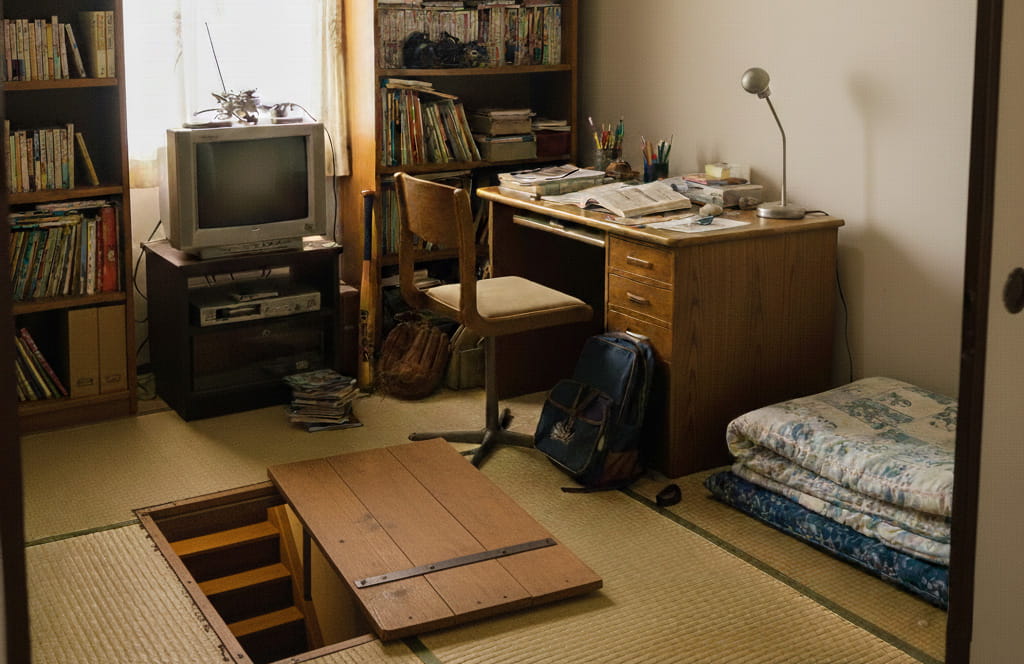 謎の隠し階段 畳だと思っていた床はただの畳柄のフローリングマットのようだ。よく見るとマットには切れ目があり、剥がしてみると、そこに隠し階段がった。そんなベタな展開あるものなのか…と思ったが、この部屋を出る手がかりとなるならそんなことも言ってられない。 階段を降りる やっぱりやめておく Lv119/182
