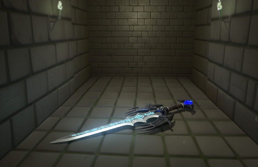 まさかこんなところに憧れの武器、スーパーアルティメットディヴァインオムニポテントマジェスティックインフィニティエターナルソードが落ちているなんて信じられないな!