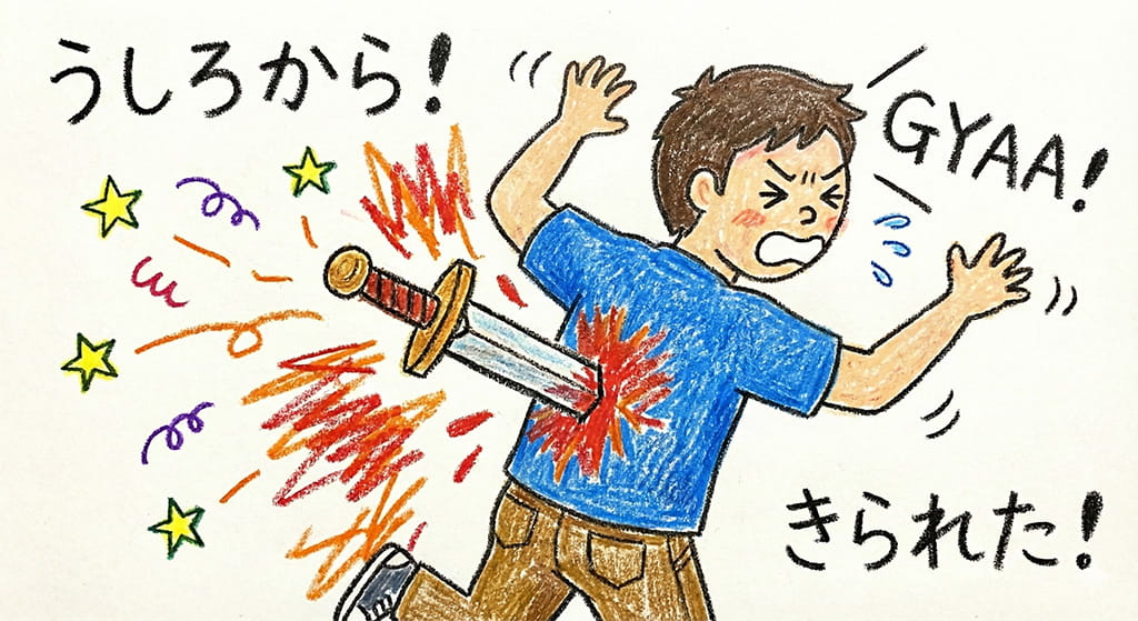 敵に背中を見せるとは迂闊也! 「剣を持った相手に背中を見せるとは迂闊也!」そう言って戦士は背後から剣を投げつけた。見事剣は背中に刺さり、それが致命傷となってしまった。あなたは死亡した!ゲームオーバー 遭遇からやり直す 部屋に戻る Lv136/182